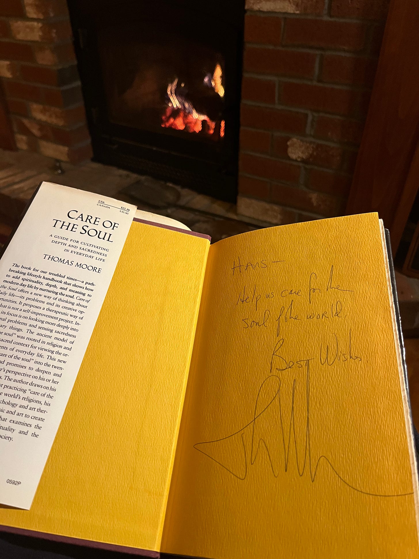 In February 1995 I must have seemed overworked and headed for burnout. Marguerite, my bed-bound patient who always encouraged me to write down my thoughts and experiences as a country doctor, gave me a copy of Thomas Moore’s 1992 bestseller “Care of the Soul”. She ran a small book editing and publishing business from her sickbed. Her vision was poor by then, but with the help of the adjustable settings on her computer, she could still do her work. When she inscribed the book with her thick fountain pen, she accidentally turned the book around and inscribed the back of it: